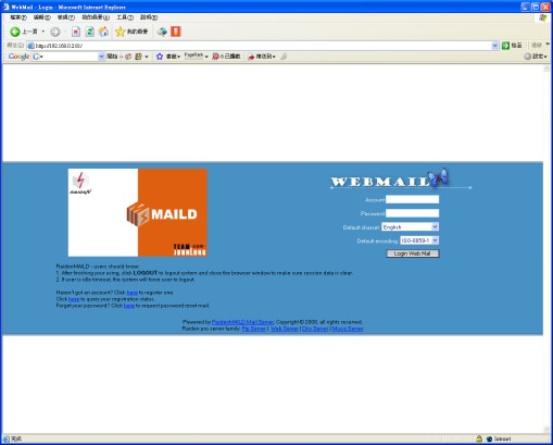 http:// [WEBMAIL IP] : [WEBMAIL PORT]/[FIRST PAGE NAME]