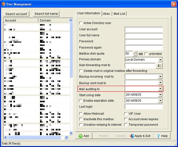 3. Then when user_A sends outgoing mails, the mails will store to audit account user_B and user_B could audit these mails on webmail.