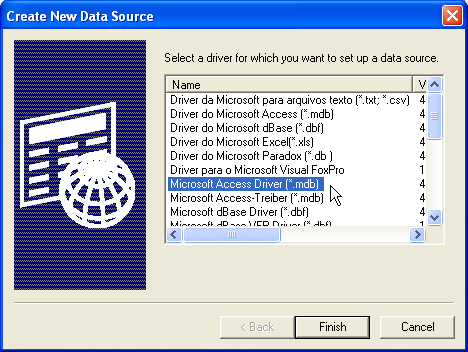 2. Click [System DSN] -> [Add] -> [Microsoft Access Driver (*.mdb)] -> Input a name for this DSN, select the raidenmaild.mdb in raidenmaild directory as your database.