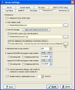 9. I suggest you to restart your raidenmaild to make sure that database mode works well or not. If there is an error occurred unfortunately, you will see error message in the log window.