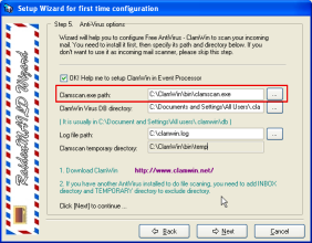 This form is for anti-virus options. It will help you to configure ClamWin to scan your incoming mail.