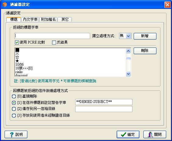 • [1] 在信件標題前註記警告字串: 只在標題前加個文字, 信件照樣存到信箱